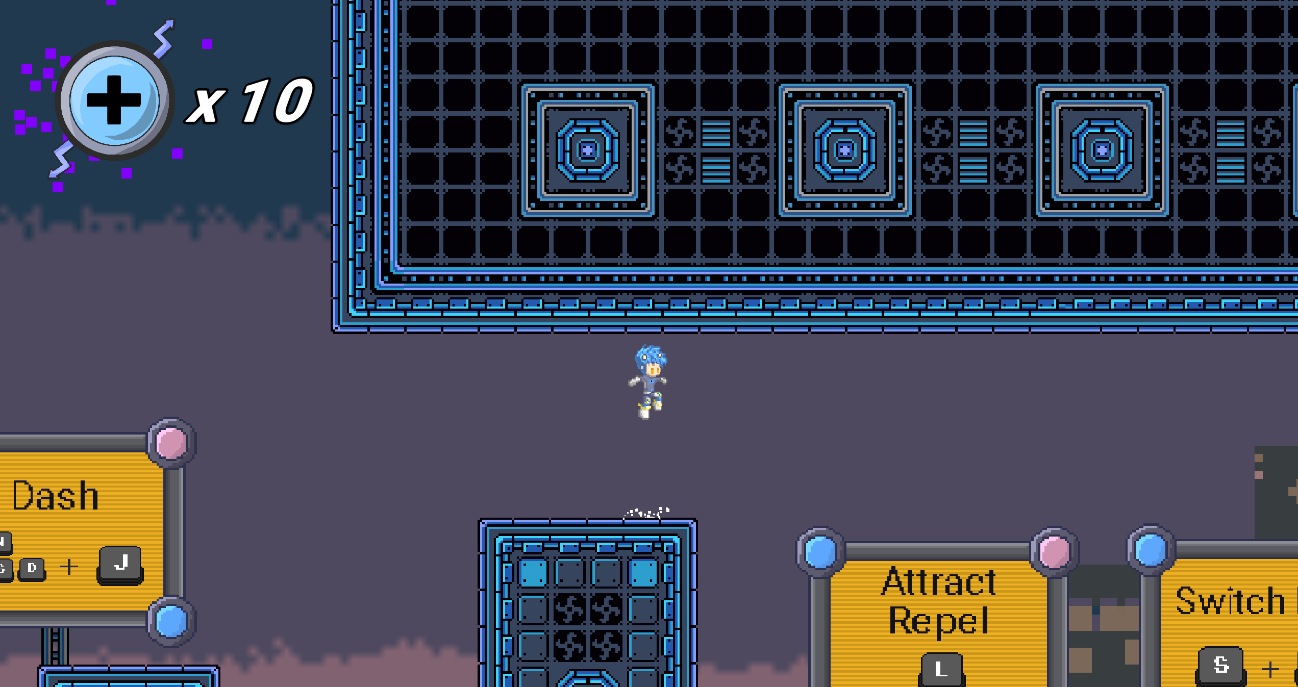 Gravity Strike is a 2D platformer game where you control a pair of robots with magnetic abilities, facing inverted-gravity environments in a futuristic setting.